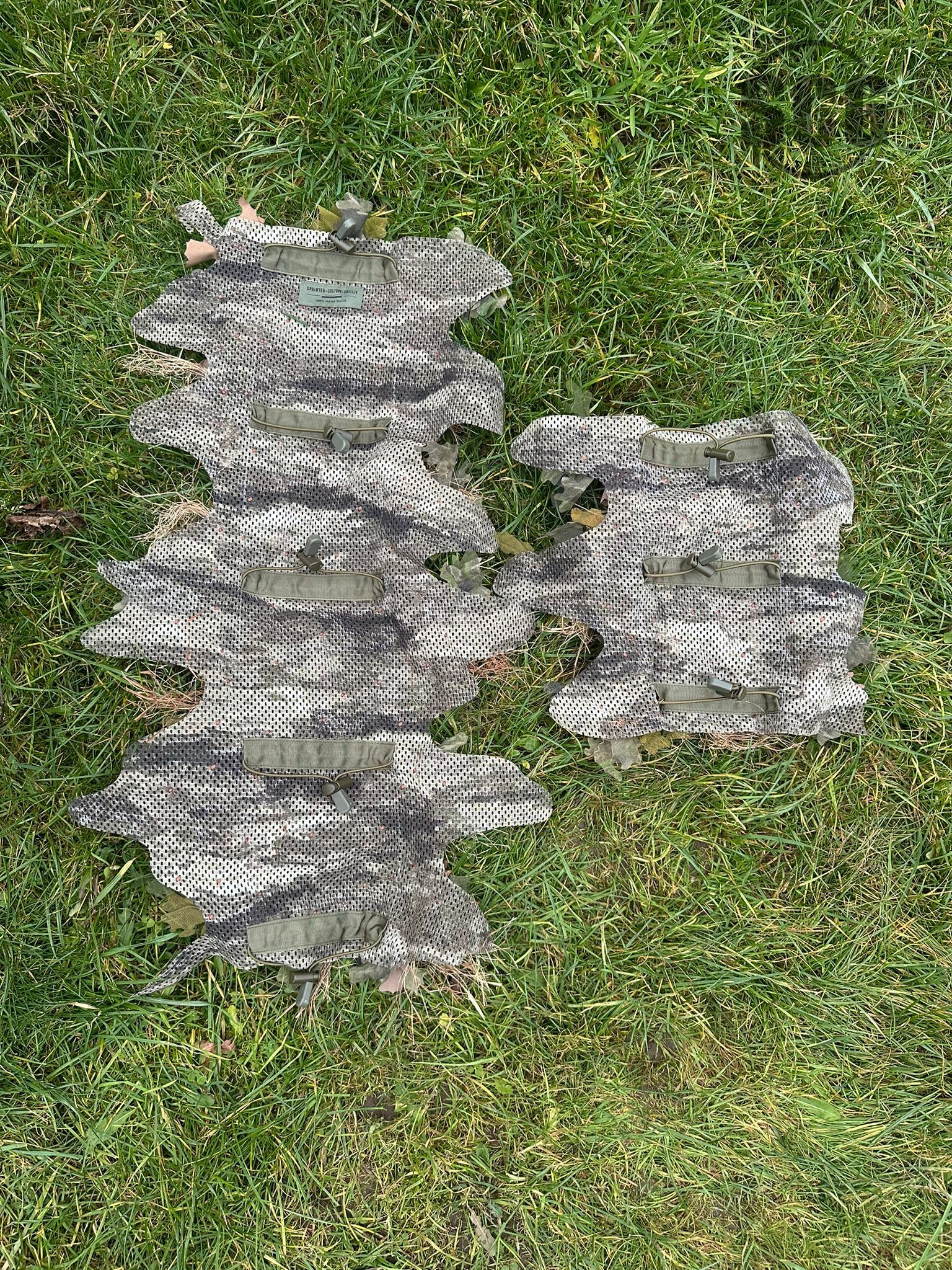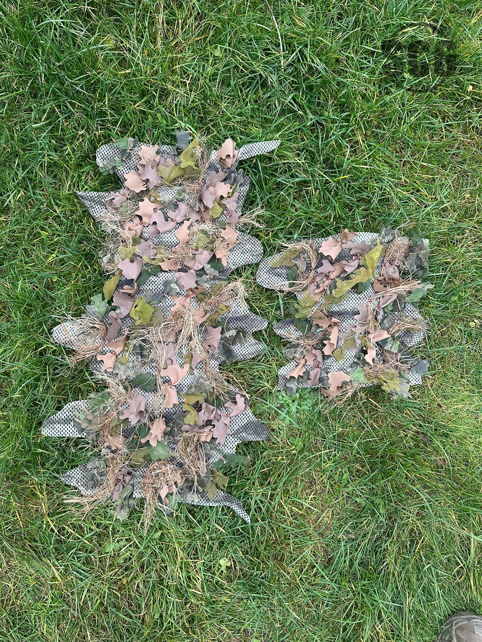 This particular example was made using mesh in the now-unavailable ATACS AUX camouflage pattern. 3D Nano Screen elements were primarily used to create dense coverage. Perfect camouflage for the fall season.